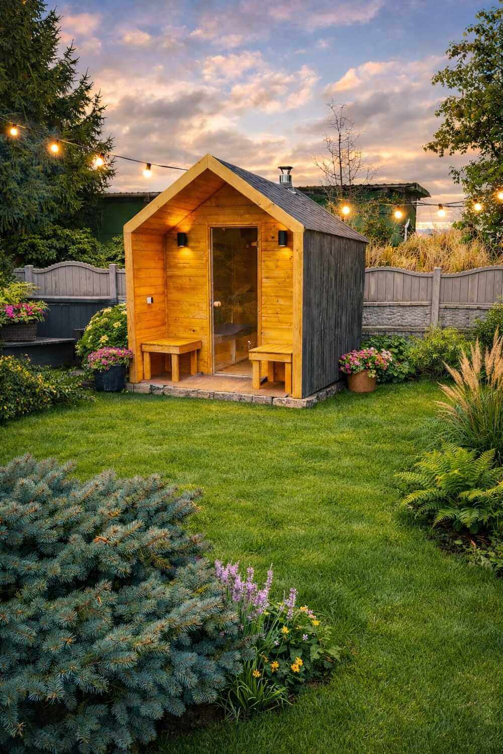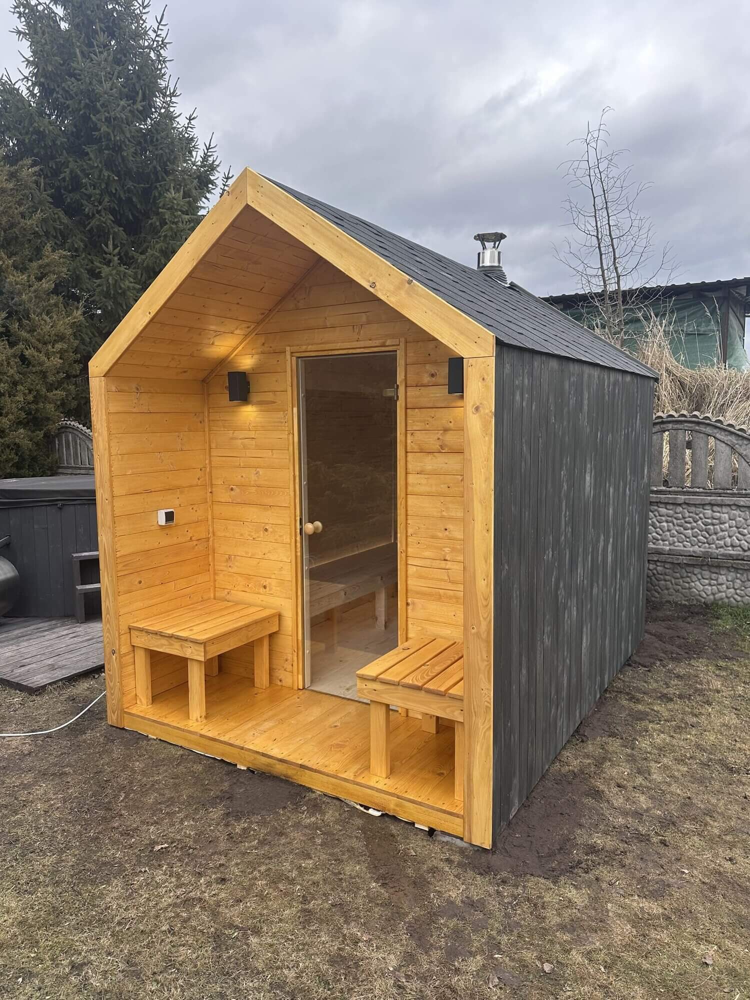 Sauna ogrodowa o wymiarze zewnętrznym 2,20 × 3,00 m wysokość 2,50 m – nowoczesny komfort w Twoim ogrodzie
